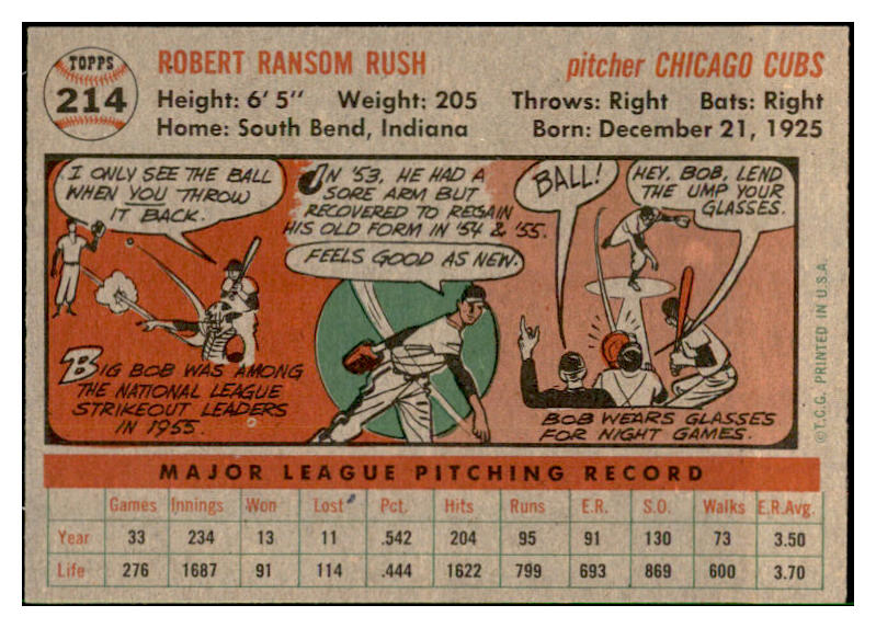 1956 Topps Baseball #214 Bob Rush Cubs EX-MT 535244