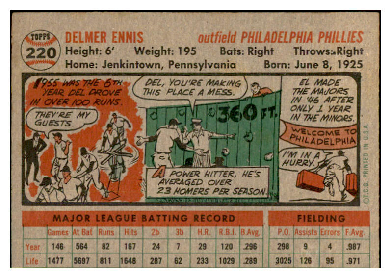 1956 Topps Baseball #220 Del Ennis Phillies EX-MT 535249