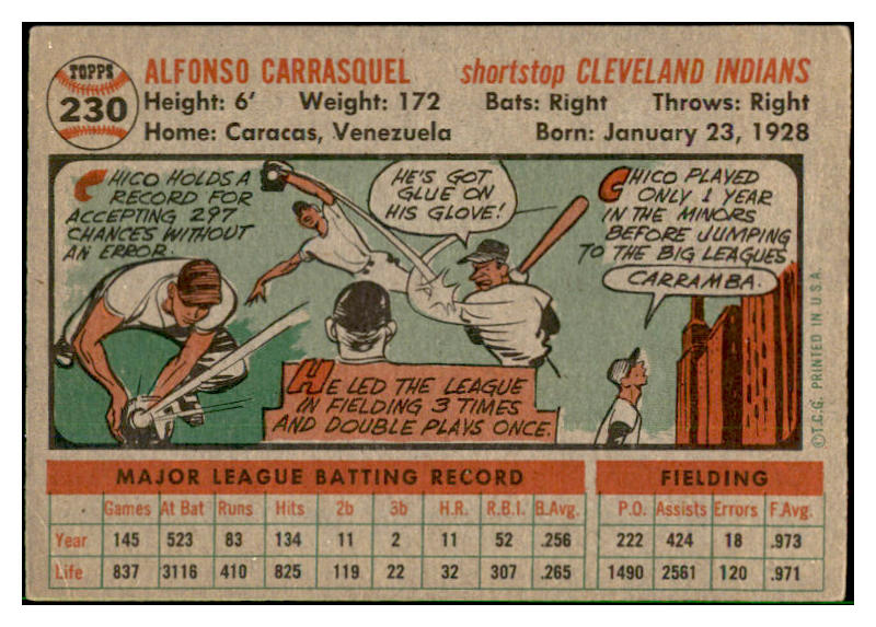 1956 Topps Baseball #230 Chico Carrasquel Indians EX-MT 535259