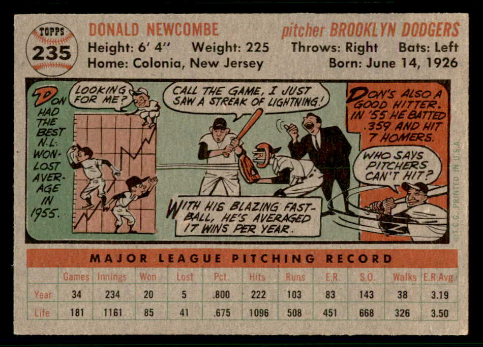 1956 Topps Baseball #235 Don Newcombe Dodgers NR-MT 541249