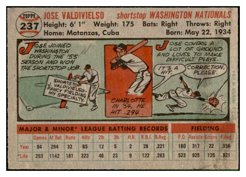 1956 Topps Baseball #237 Jose Valdivielso Senators EX-MT 535265