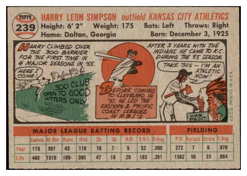 1956 Topps Baseball #239 Harry Simpson A's EX-MT 528429