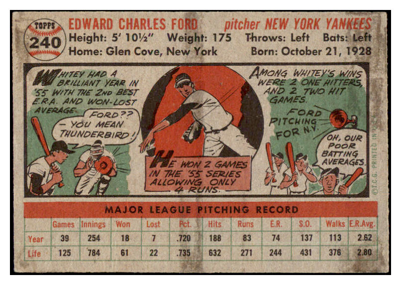 1956 Topps Baseball #240 Whitey Ford Yankees EX-MT 529299