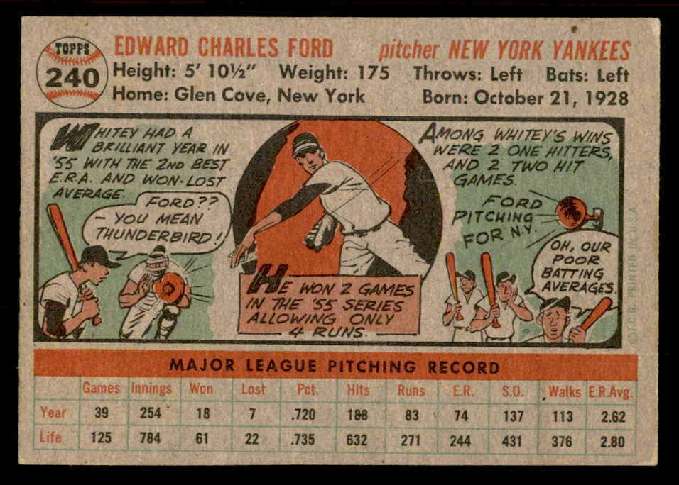 1956 Topps Baseball #240 Whitey Ford Yankees EX-MT 539120