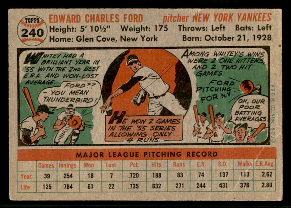 1956 Topps Baseball #240 Whitey Ford Yankees VG 541199