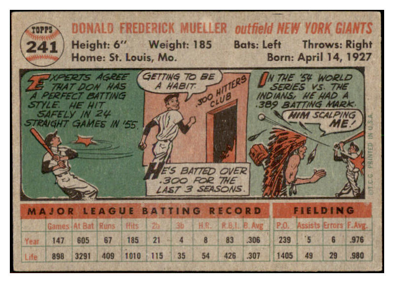 1956 Topps Baseball #241 Don Mueller Giants EX-MT 528176