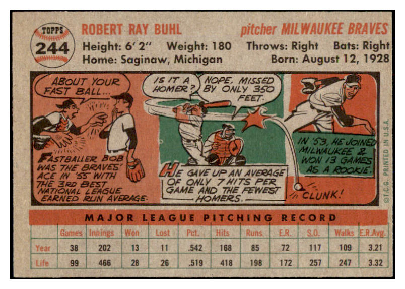 1956 Topps Baseball #244 Bob Buhl Braves EX-MT 528426