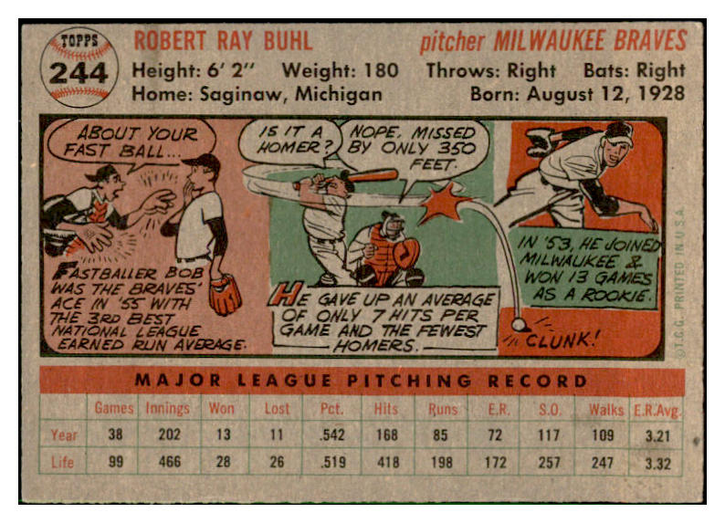 1956 Topps Baseball #244 Bob Buhl Braves EX-MT 535272