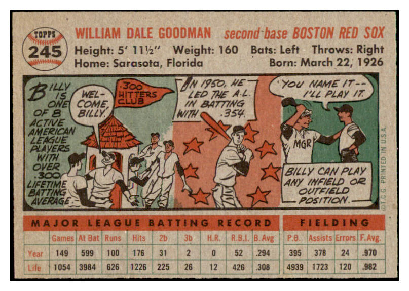 1956 Topps Baseball #245 Billy Goodman Red Sox EX-MT 528425