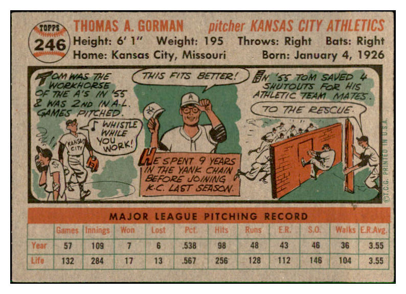 1956 Topps Baseball #246 Tom Gorman A's EX-MT 535275