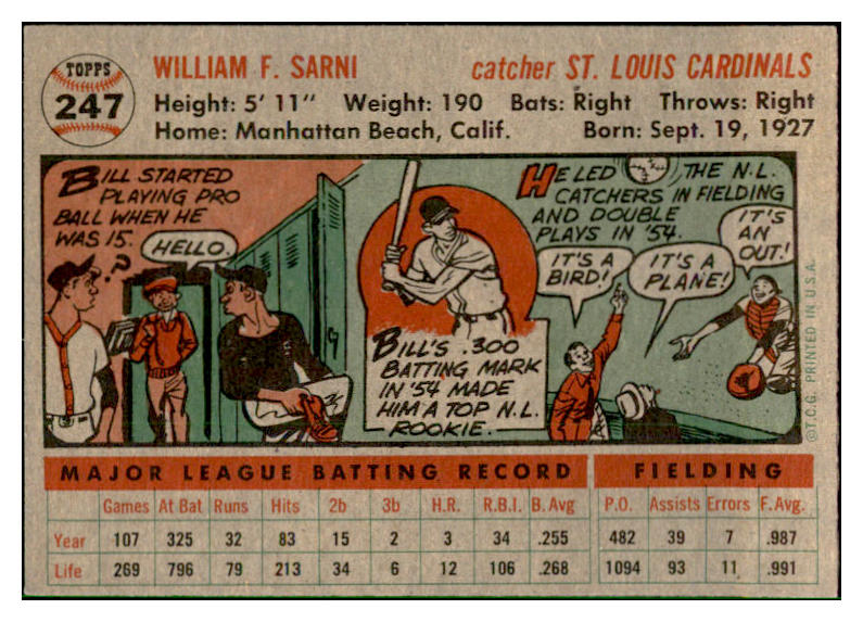 1956 Topps Baseball #247 Bill Sarni Cardinals EX-MT 535276