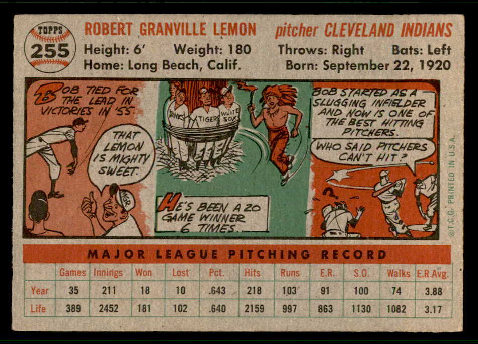 1956 Topps Baseball #255 Bob Lemon Indians EX-MT 541203