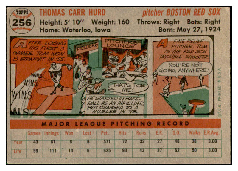 1956 Topps Baseball #256 Tom Hurd Red Sox EX-MT 535284