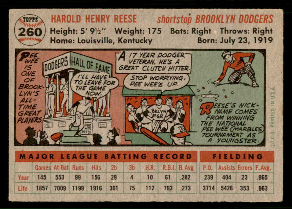 1956 Topps Baseball #260 Pee Wee Reese Dodgers EX+/EX-MT 541866