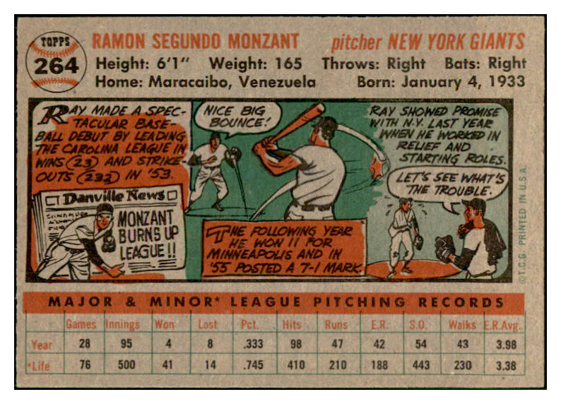 1956 Topps Baseball #264 Ray Monzant Giants EX-MT 535293