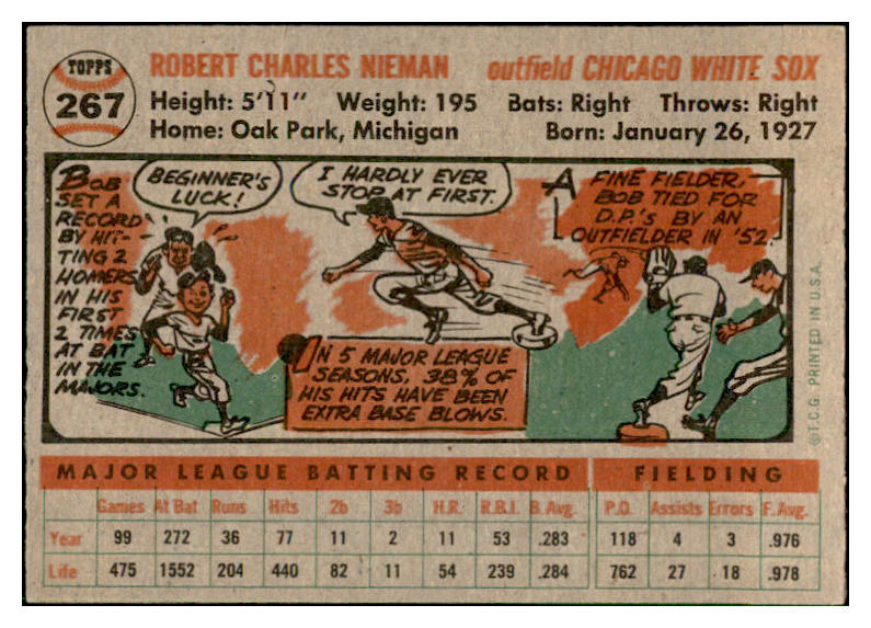 1956 Topps Baseball #267 Bob Nieman White Sox EX-MT 535297