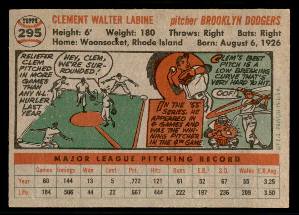1956 Topps Baseball #295 Clem Labine Dodgers EX-MT 541218