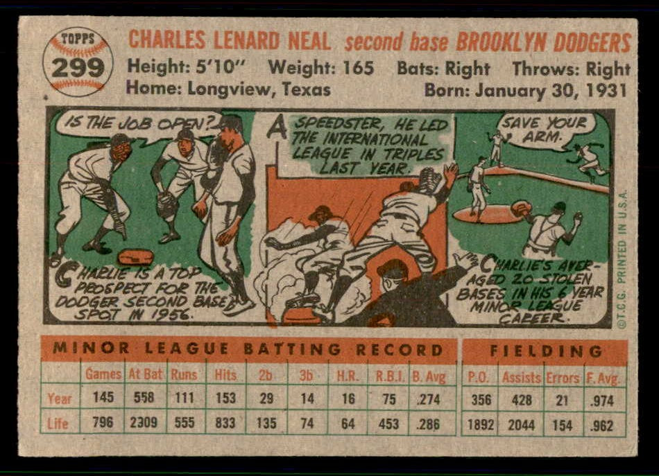 1956 Topps Baseball #299 Charlie Neal Dodgers EX-MT 543252