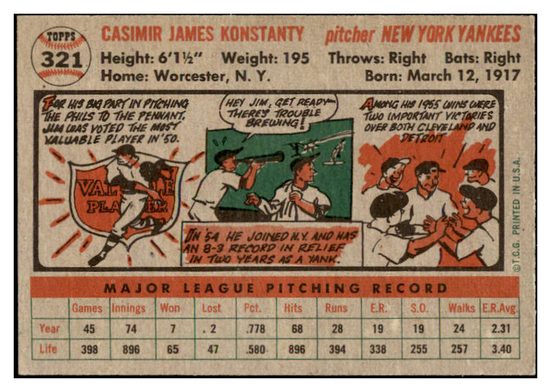 1956 Topps Baseball #321 Jim Konstanty Yankees EX-MT 529724