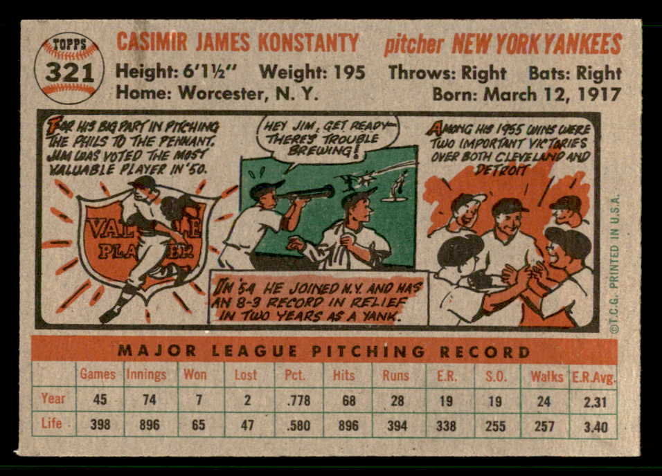 1956 Topps Baseball #321 Jim Konstanty Yankees EX-MT 542389