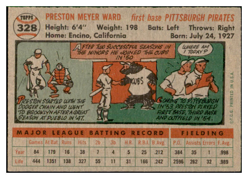 1956 Topps Baseball #328 Preston Ward Pirates EX-MT 535376