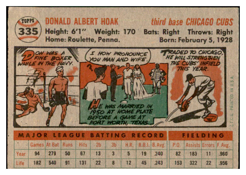1956 Topps Baseball #335 Don Hoak Cubs EX-MT 535386