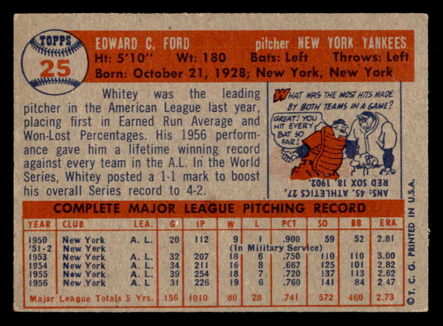 1957 Topps Baseball #025 Whitey Ford Yankees VG-EX 547211