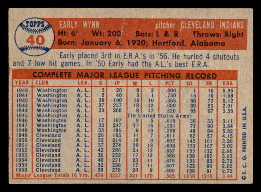 1957 Topps Baseball #040 Early Wynn Indians EX+/EX-MT 547188