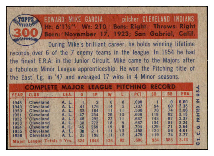 1957 Topps Baseball #300 Mike Garcia Indians EX-MT 525298