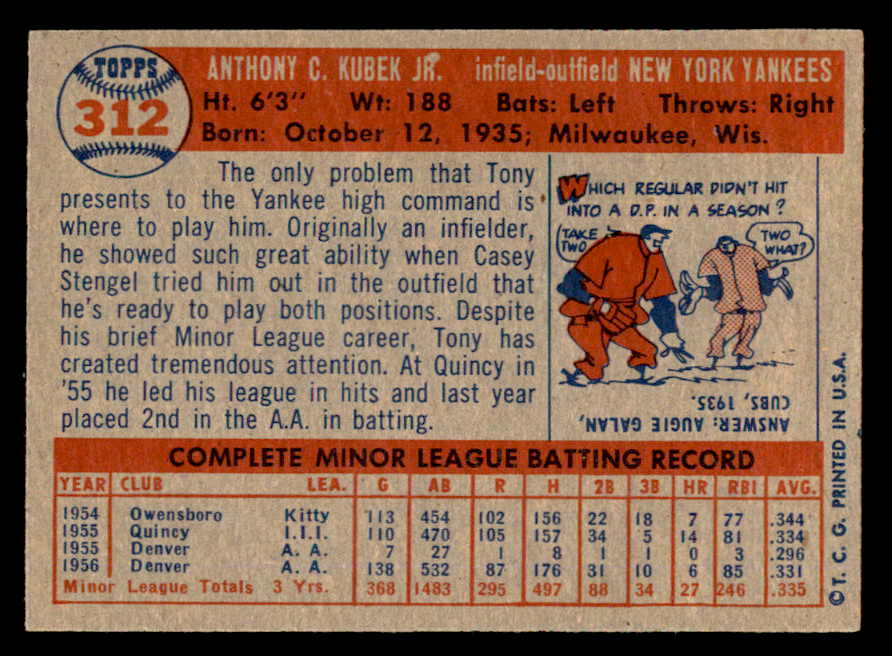 1957 Topps Baseball #312 Tony Kubek Yankees EX+/EX-MT 540044