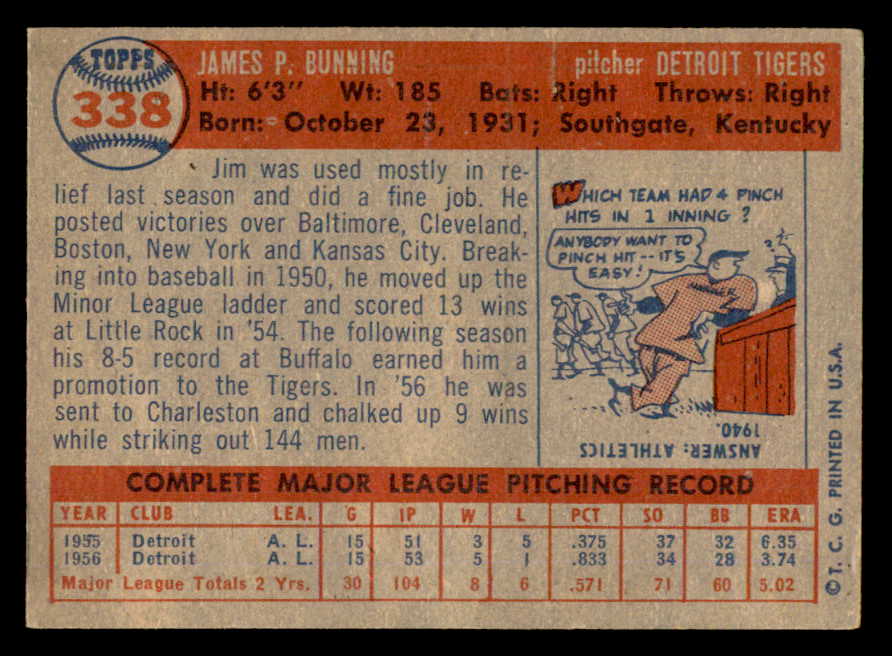 1957 Topps Baseball #338 Jim Bunning Tigers VG-EX 540084