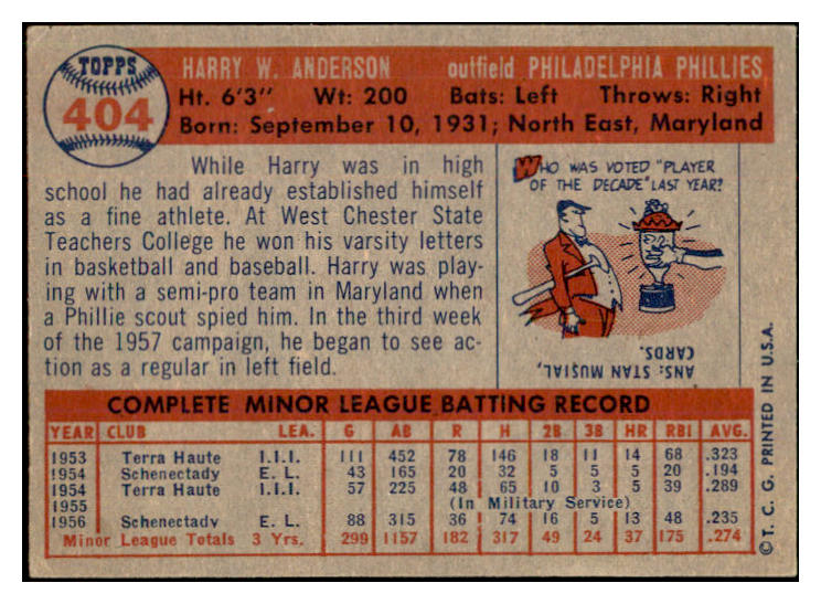 1957 Topps Baseball #404 Harry Anderson Phillies EX-MT 534932