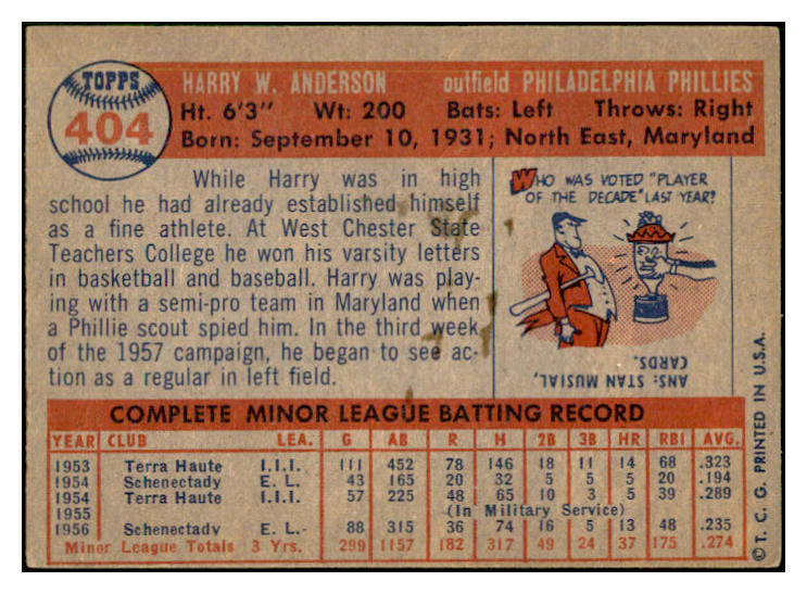 1957 Topps Baseball #404 Harry Anderson Phillies EX-MT 535534
