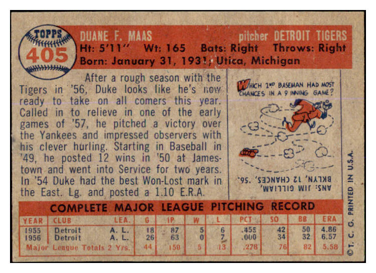 1957 Topps Baseball #405 Duke Maas Tigers EX-MT 527693