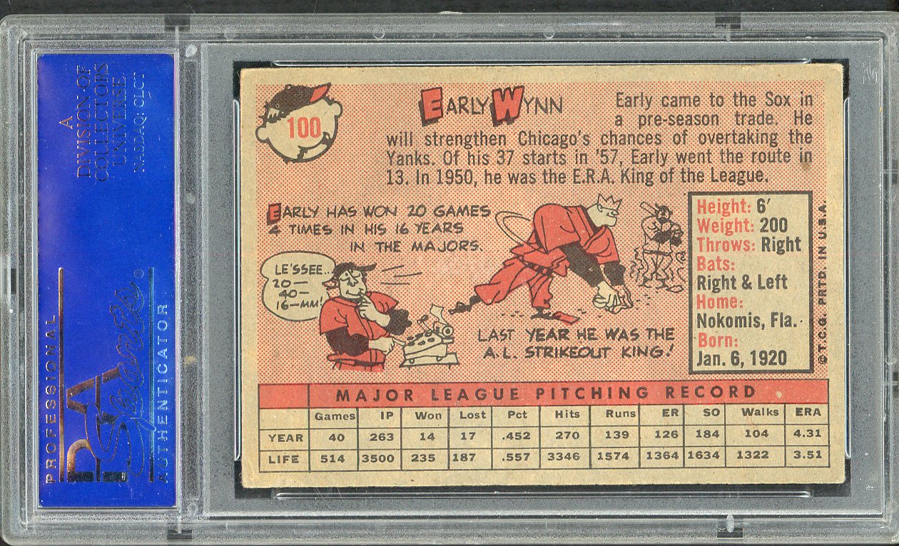 1958 Topps Baseball #100 Early Wynn White Sox PSA 5 EX Yellow Letter 546592