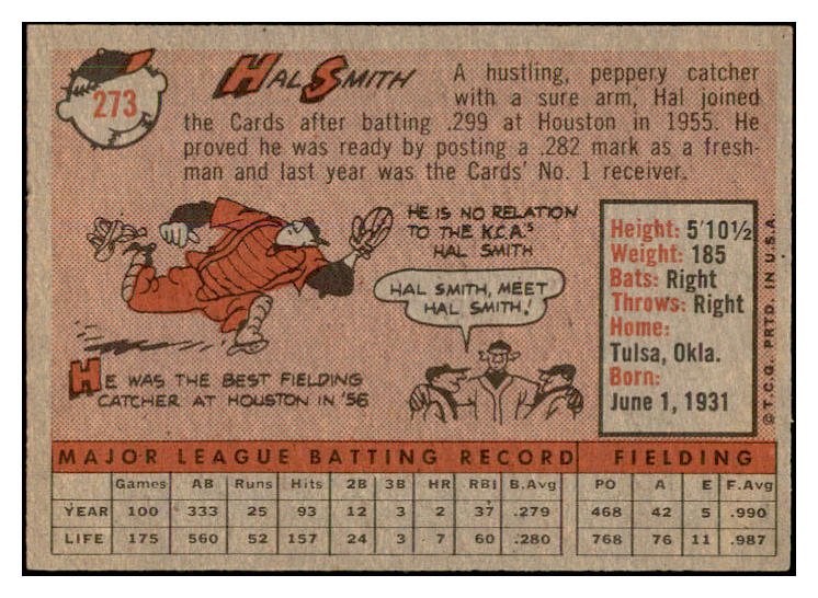 1958 Topps Baseball #273 Hal Smith Cardinals EX-MT 535865