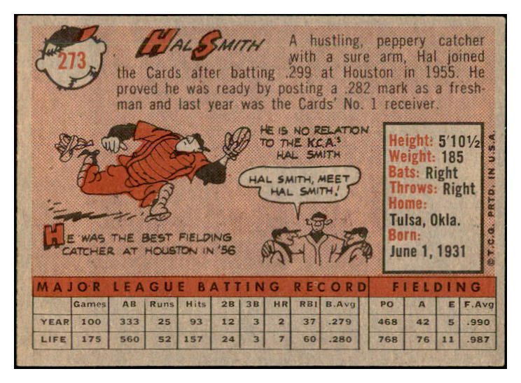 1958 Topps Baseball #273 Hal Smith Cardinals EX-MT 535866