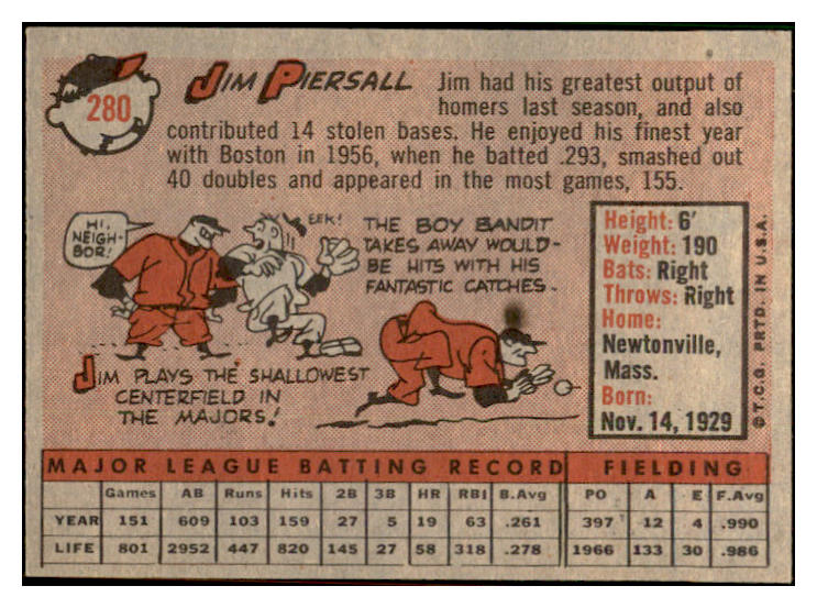 1958 Topps Baseball #280 Jimmy Piersall Red Sox EX-MT 532754