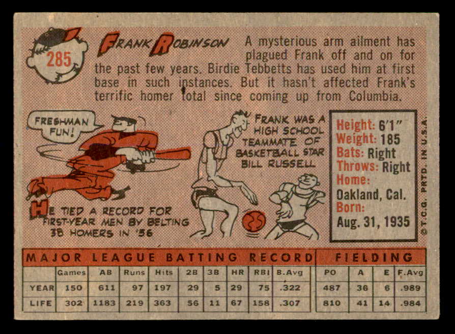 1958 Topps Baseball #285 Frank Robinson Reds EX-MT 539327