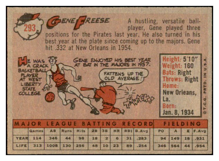 1958 Topps Baseball #293 Gene Freese Pirates EX-MT 535889
