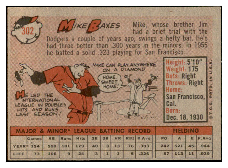1958 Topps Baseball #302 Mike Baxes A's EX-MT 535897