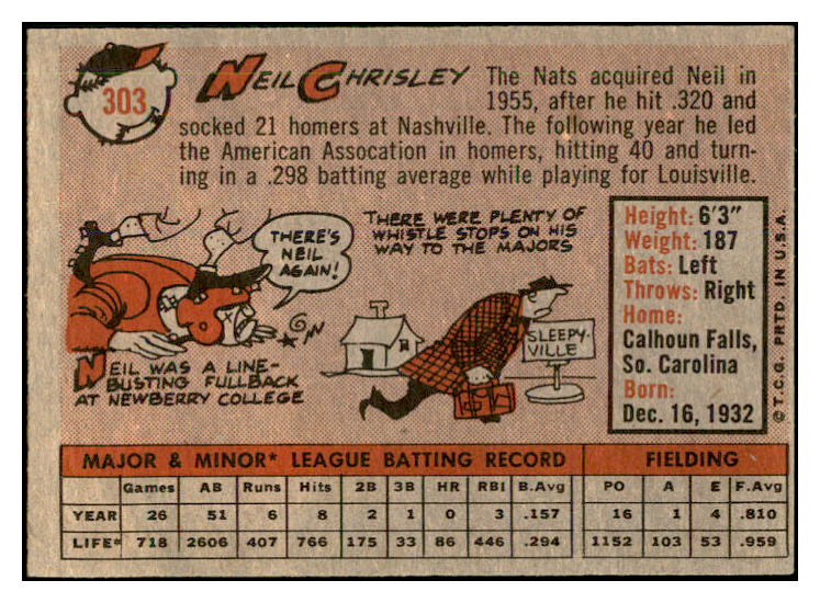 1958 Topps Baseball #303 Neil Chrisley Senators EX-MT 535899