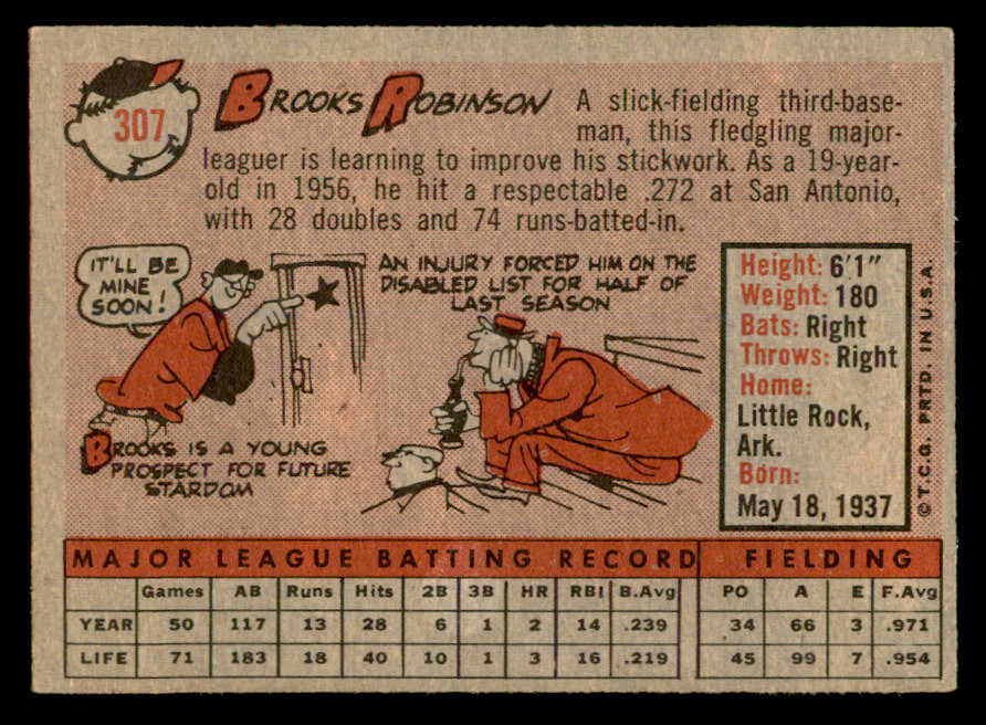 1958 Topps Baseball #307 Brooks Robinson Orioles EX+/EX-MT 539323