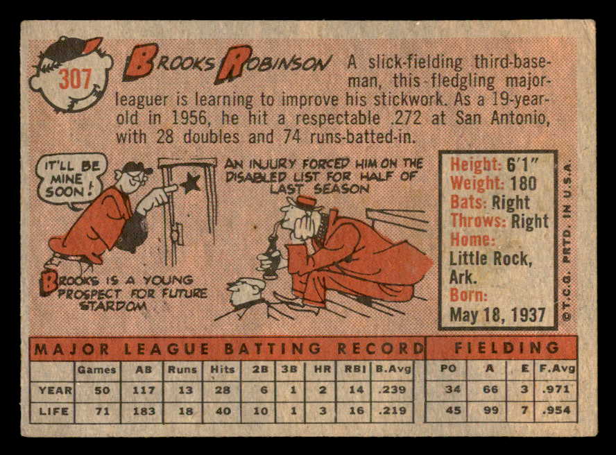 1958 Topps Baseball #307 Brooks Robinson Orioles VG 540135