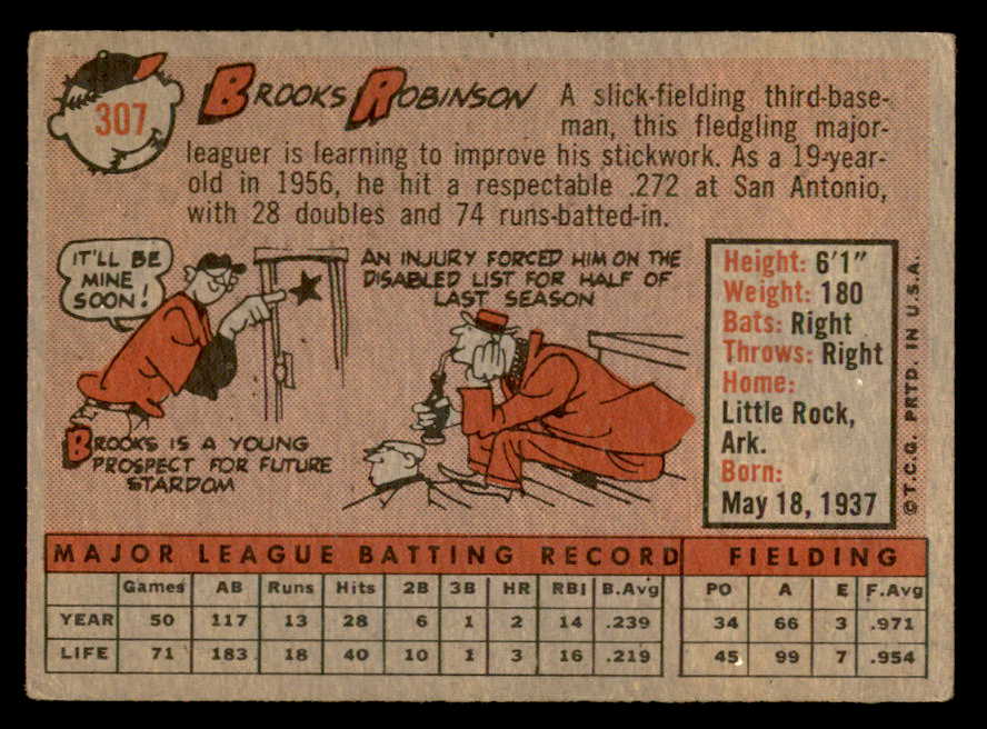 1958 Topps Baseball #307 Brooks Robinson Orioles VG 540136