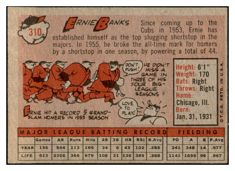 1958 Topps Baseball #310 Ernie Banks Cubs VG-EX 532406