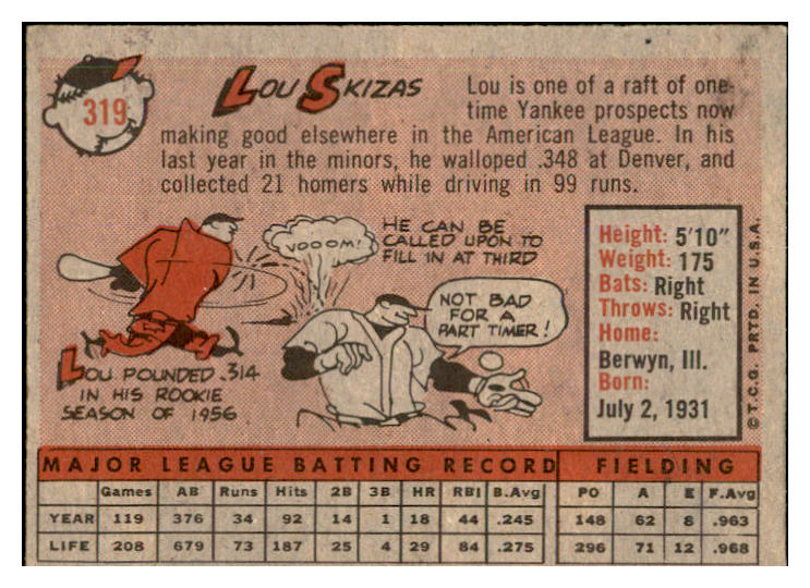 1958 Topps Baseball #319 Lou Skizas Tigers EX-MT 535915