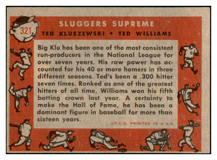 1958 Topps Baseball #321 Ted Williams Ted Kluszewski EX-MT 532523