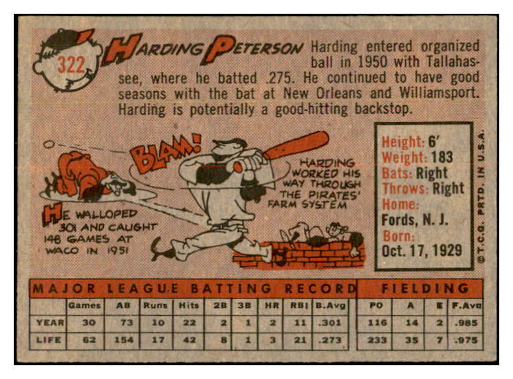 1958 Topps Baseball #322 Harding Peterson Pirates EX-MT 535917