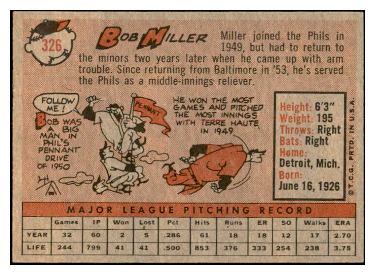 1958 Topps Baseball #326 Bob Miller Phillies EX-MT 535920
